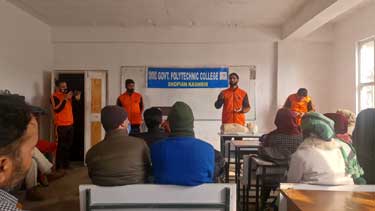 One day training programme by SDRF on Disaster management was organised at GOVERNMENT POLYTECHNIC COLLEGE SHOPIAN on 23rd December 2021 . All the students and faculty participated in the programme. Students Lauded the Principal , H.O.D and all faculty and Staff Members for organizing such events. The event ended with a note of thanks to SDRF team and all Participants by our dynamic principal Er. Mohammad Shafi Bhat Sir. |